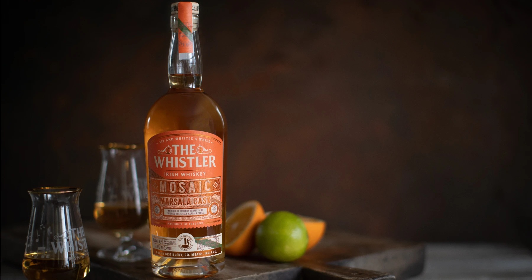 The Whistler Mosaic Marsala Cask is a fantastic example of a premium, small batch Single Grain whiskey from Ireland. This unique single grain Irish whiskey has been initially matured in ex-bourbon casks before being finished in exquisite Sicilian Marsala casks. This creates a perfectly balanced whiskey which boasts a deliciously fruity and flavoursome nose and palate to match.
